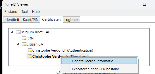 Ga naar Certificaten -> Rechterclick -> Gedetailleerde Informatie