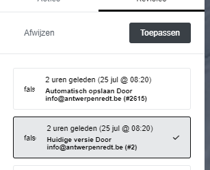 Opgelet ! Onderstaande acties zorgen ervoor dat alle voorgaande versies (buiten de huidige) van alle pagina's worden verwijderd.