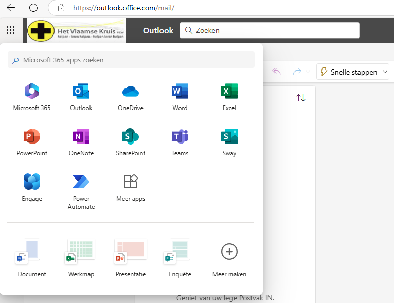 als je aangemeld bent en links bovenaan op de 9 puntjes klikt, heb je toegang tot de toepassingen.