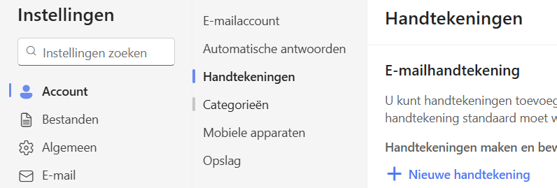 Klik vervolgens op hat tandwiel -> Account -> Hantekeningen.